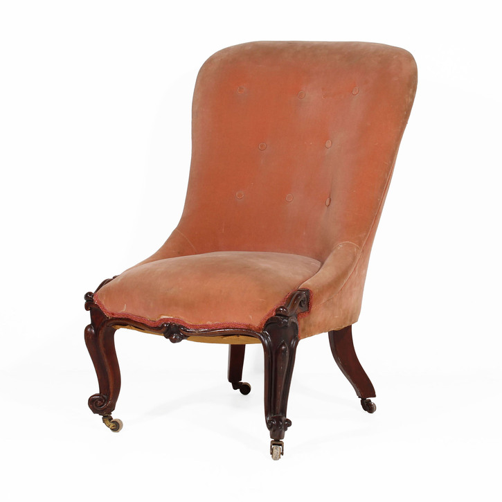 Terracotta Button Dralon, Mahogany Legs on Castors Bedroom Chair
