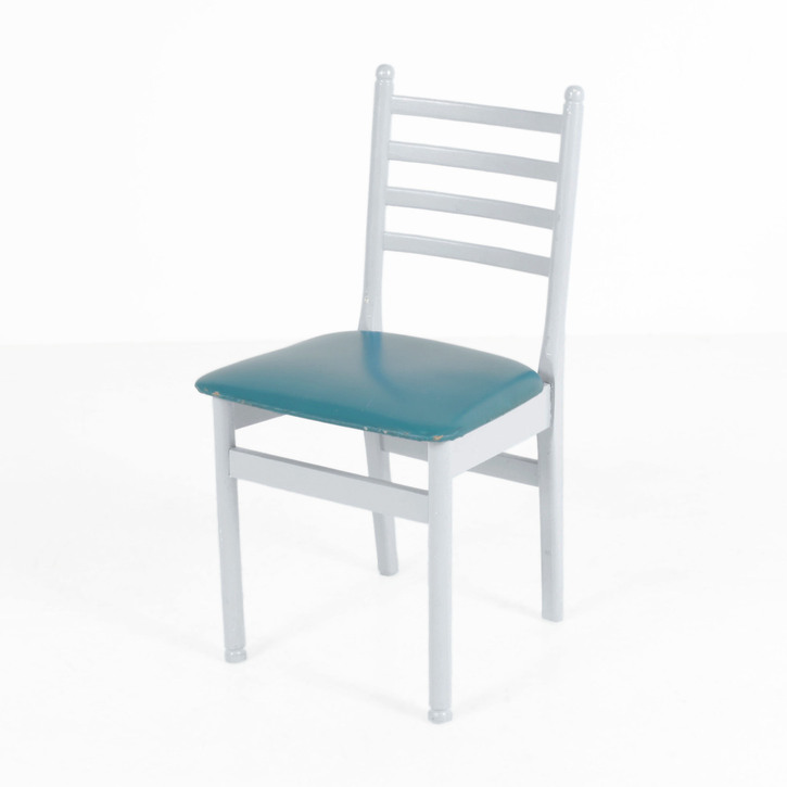 White Ladderback/Blue Vinyl Seat Occasional Kitchen Chair