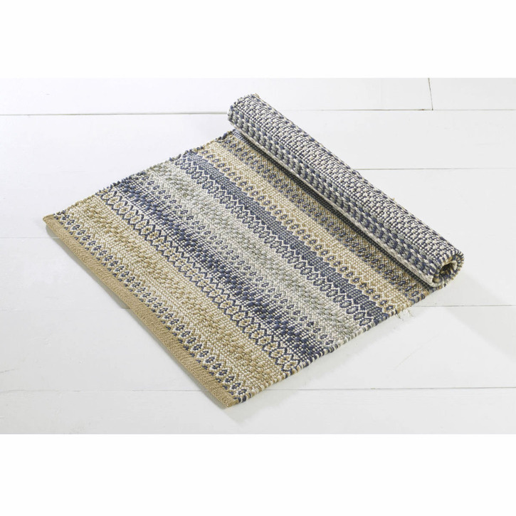 180Cm X 120Cm Blue & Gold Pattern Line Dhurrie Rug