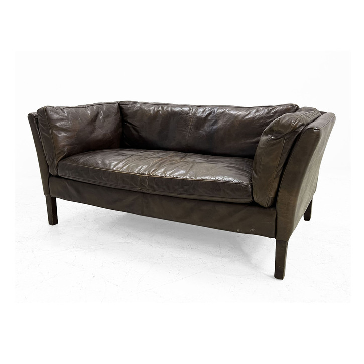 Vintage Brown Leather 2 Seat Splay Arm Sofa