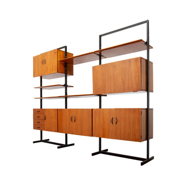 Modular Italian Rosewood Shelf Unit with Black Steel Support (5 Cupboards & 5 Shelves)
